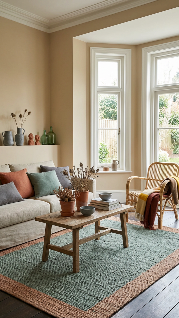 Conseil : Utilisez des couleurs terreuses en fond et ajoutez des accessoires plus vibrants pour dynamiser vos pièces.
